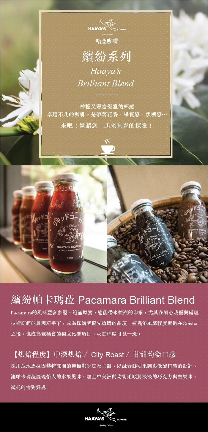 哈亞咖啡【繽紛系列。無糖。 瓶裝咖啡6入】繽紛帕卡瑪菈 評價